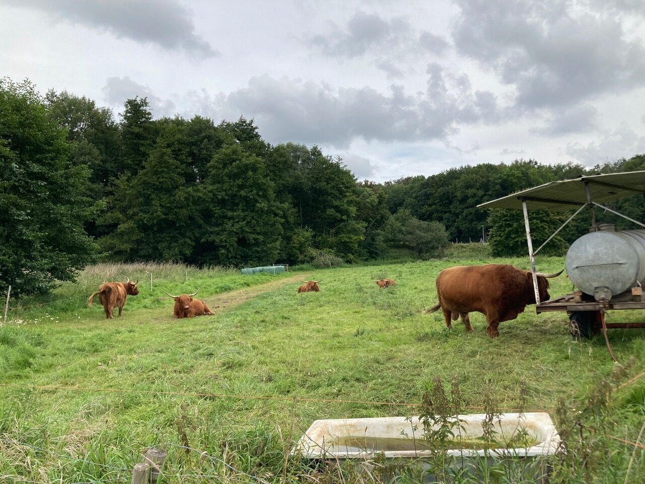 Auf dem letzten Drittel der Strecke wird der Weg besser und breiter und die Fahrt deutlich entspannter. Anderen Fahrradfahrern und Spaziergängern begegne ich unterwegs kaum. Dafür sehe ich einige Tiere. Kormorane, die von mir aufgescheucht Reißaus nehmen und den Wasserlauf entlangfliehen. Schafe, Enten, Schwäne und Heidschnucken, außerdem eine Herde Schottischer Hochlandrinder mit spitzen ausladenden Hörnern, die wegen ihrer über die Augen reichenden Frisuren und dem rotbraunen Fell eher wie liebenswerte Hunde aussehen. Sogar eine bestimmt zehnköpfige Otterfamilie überquert vor mir auf dem Fahrradweg den Deich. Je näher ich komme, um so schneller eilen die Puschelwesen mit dem glänzenden Fell die Böschung hinab und verschwinden im Gestrüpp des Ufers. Wahrscheinlich waren es gar keine Otter, sondern Bisamratten oder Nutrias. Trotzdem finde ich die Tiere niedlich. Später lese ich in den Lübecker Nachrichten einen Artikel mit der Überschrift NEUE TIERISCHE MITBEWOHNER IN MÖLLN: SIND NUTRIAS EINE GEFAHR FÜR HUNDE?